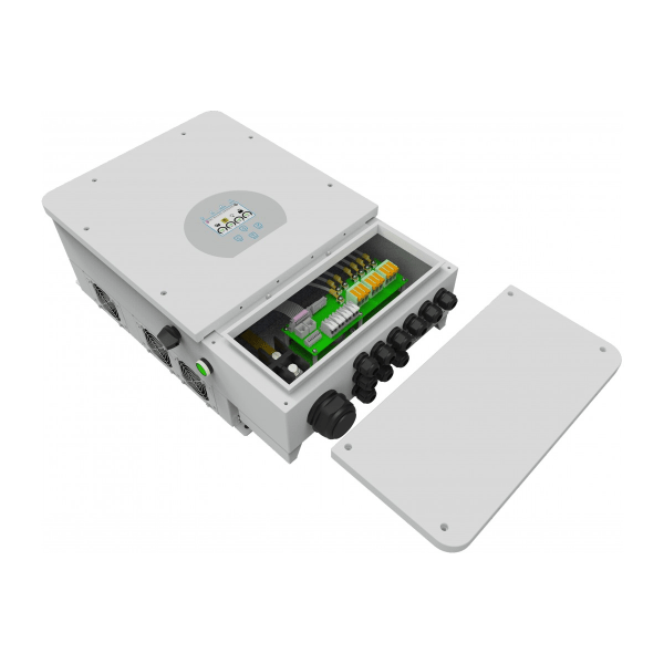 Гібридний інвертор для СЕС Deye SUN-12K-SG04LP3-EU підтримує трифазний несиметричний вихід, завдяки чому розширюються варіанти застосування. Оснащений портом CAN, RS485 зв’язку з BMS для організації дистанційного керування, що робить систему розумною та гнучкою.