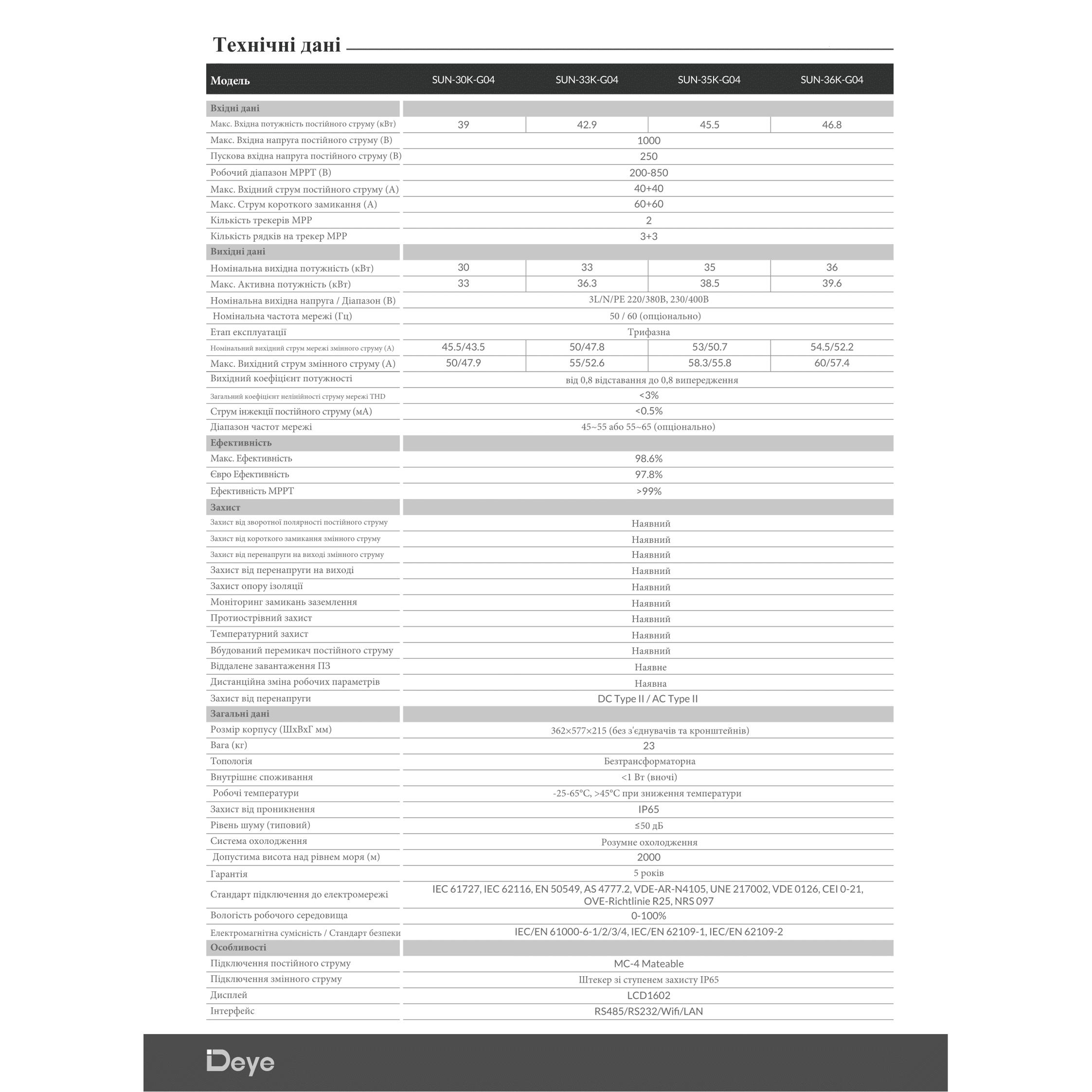 Крім того, Deye SUN-30K-G04 оснащений: