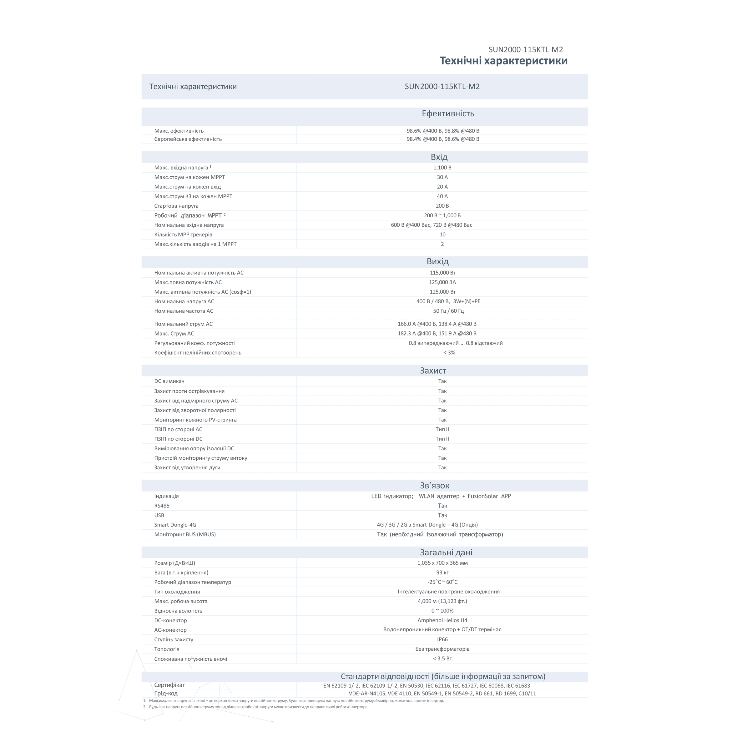 Мережевий інвертор Huawei SUN2000-115KTL-M2 Datasheet