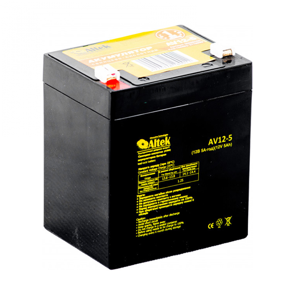 Аккумулятор Altek AV12-5 AGM — надежный свинцово-кислотный накопитель энергии. В отличие от классических моделей, в аккумуляторах серии AGM электролит абсорбируется сепараторами из стекловолокна. Технология absorbent glass mat обеспечивает лучшие конструктивные и эксплуатационные характеристики.